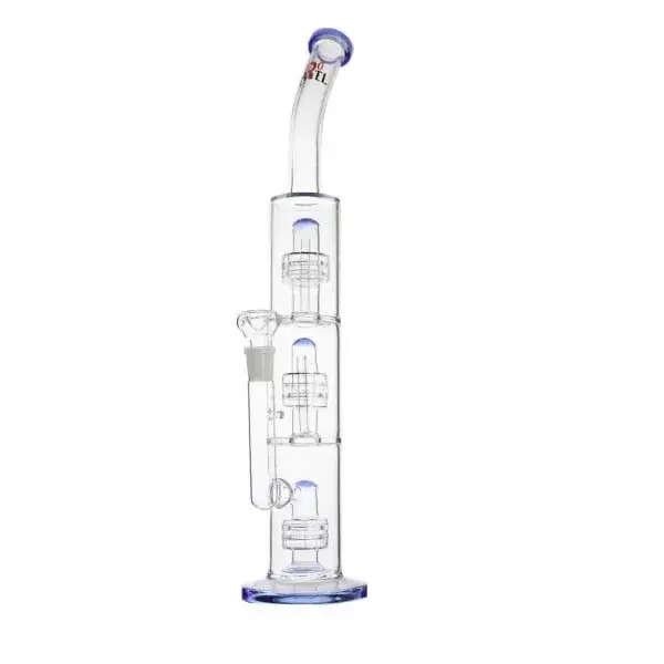 The taller the better! This Triple Matrix Water Pipe by 420 Cartel stand around 45cm tall. There is plenty of room for airflow, air filtration, and percolation. This long bongs comes with a curved neck making it comfortable to use and it assist in eliminating any water splashes. The waterpipe is paired with a large round base that keeps the pipe sturdy and less likely to tip over.