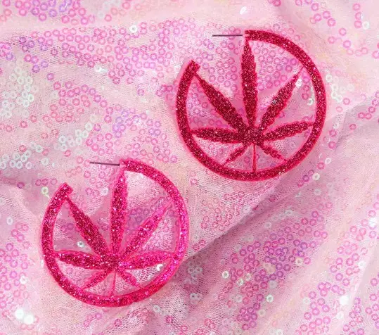 Pink glitter leaf design earrings