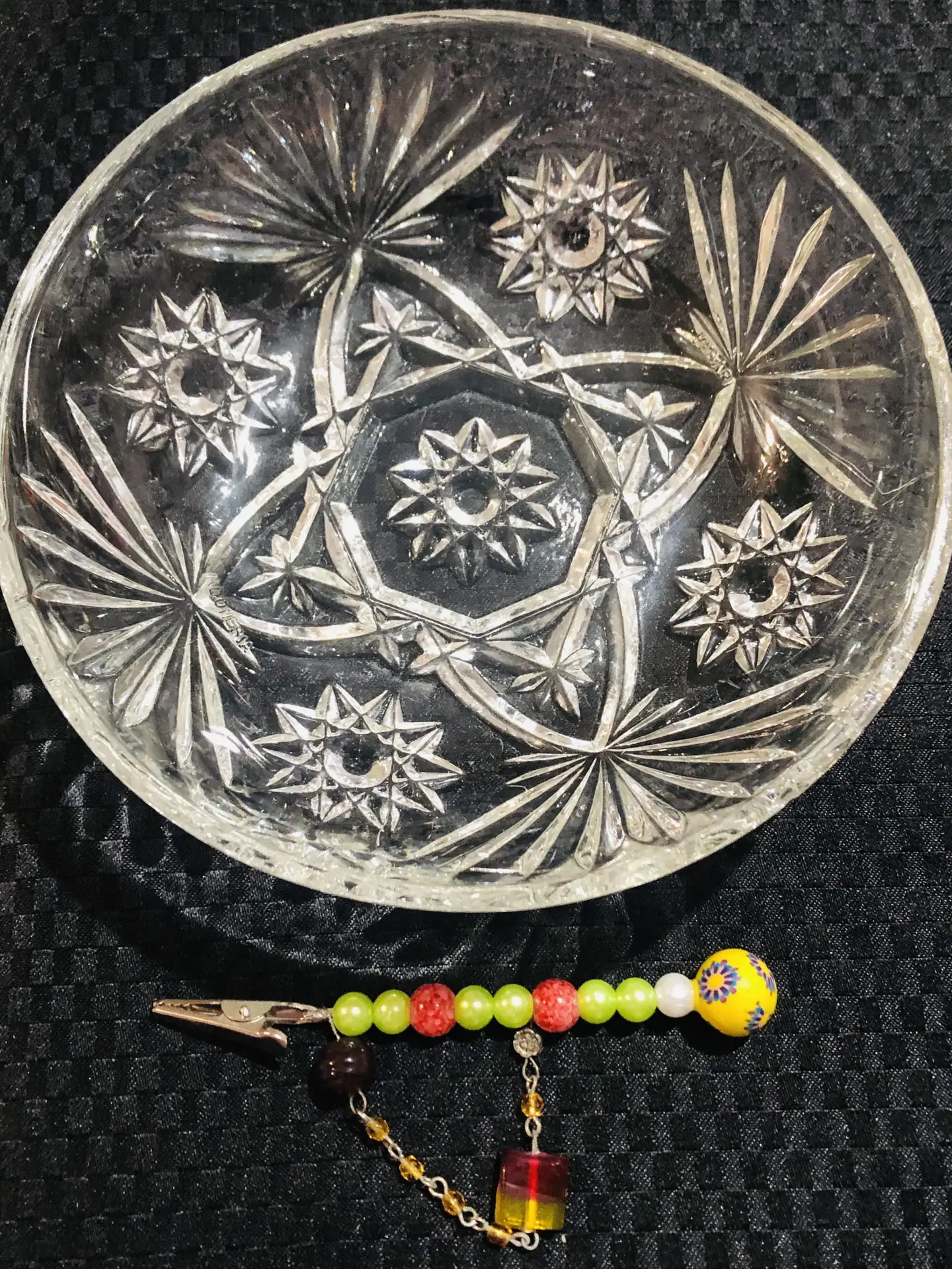 Vintage glass bowl and clip set